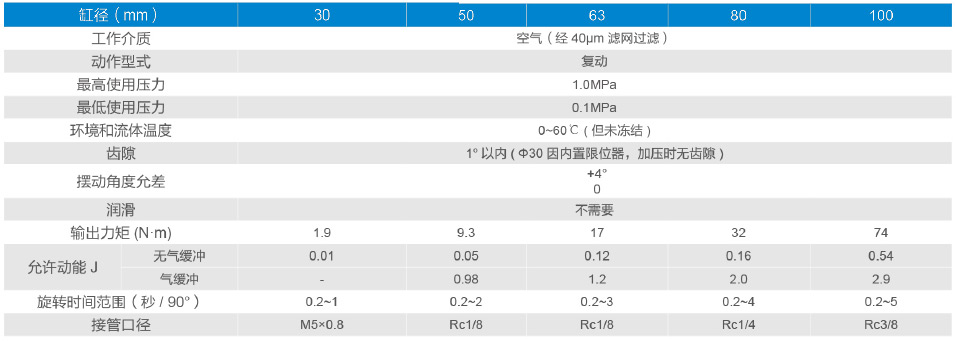 CRA1系列齒條式旋轉(zhuǎn)擺動氣缸