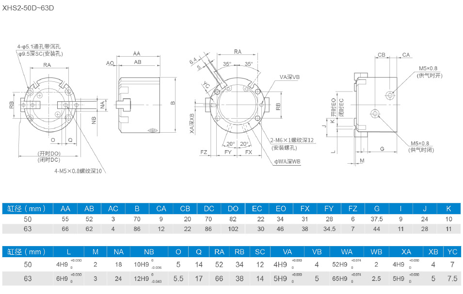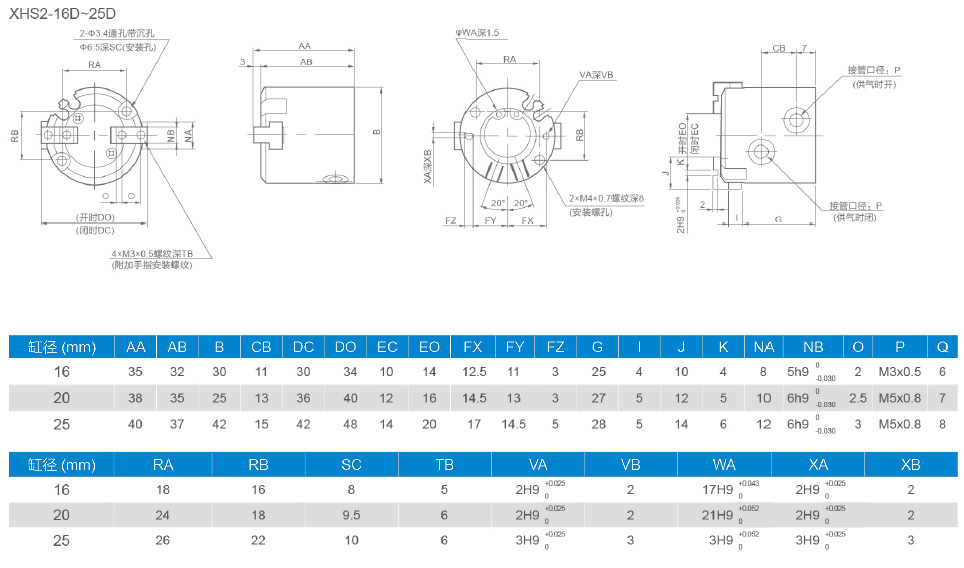XHS2平行開(kāi)閉型氣動(dòng)手指(圓柱形)