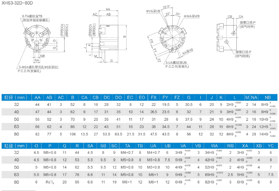 XHS3平行開閉型氣動手指(圓柱形)