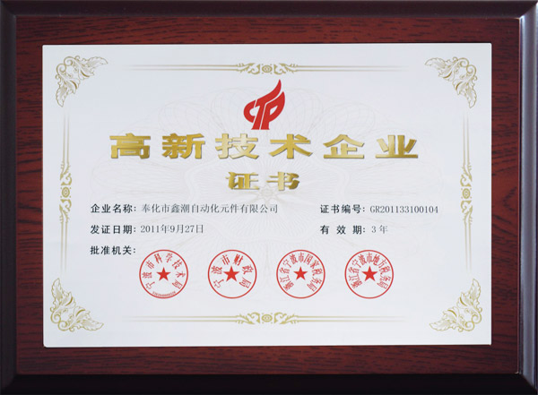 鑫潮氣動(dòng)公司 被寧波多家政府機(jī)關(guān) 授予“國(guó)家高新技術(shù)企業(yè)”稱號(hào)。