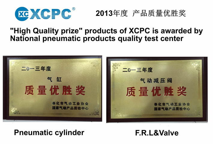 2013年,鑫潮氣動(XCPC Pneumatic)將自己工廠的樣品送到國家氣動產(chǎn)品質(zhì)量檢驗(yàn)中心,在眾多的氣動工廠中脫穎而出,所生產(chǎn)的氣缸,氣動減壓閥獲得了認(rèn)可,被國家氣動產(chǎn)品質(zhì)量檢驗(yàn)中心評為2013年度質(zhì)量優(yōu)勝獎。