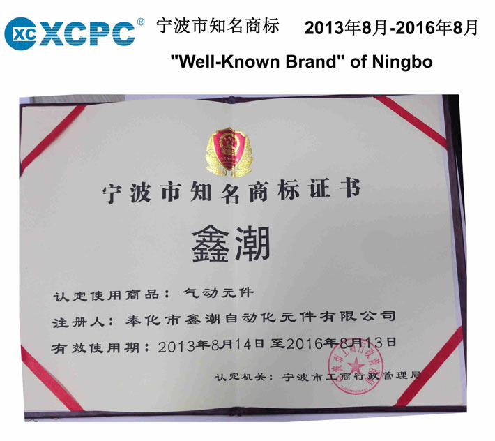鑫潮氣動(XCPC Pneumatic)獲得了寧波市知名商標
