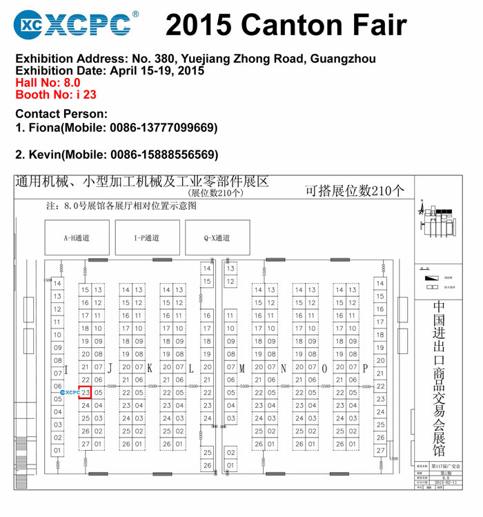2015年4月15日-19日,鑫潮氣動(XCPC Pneumatic)將在參加第117屆廣交會,歡迎新老客戶到時訪問我們的展位。攤位詳細圖請參考附上的圖片
